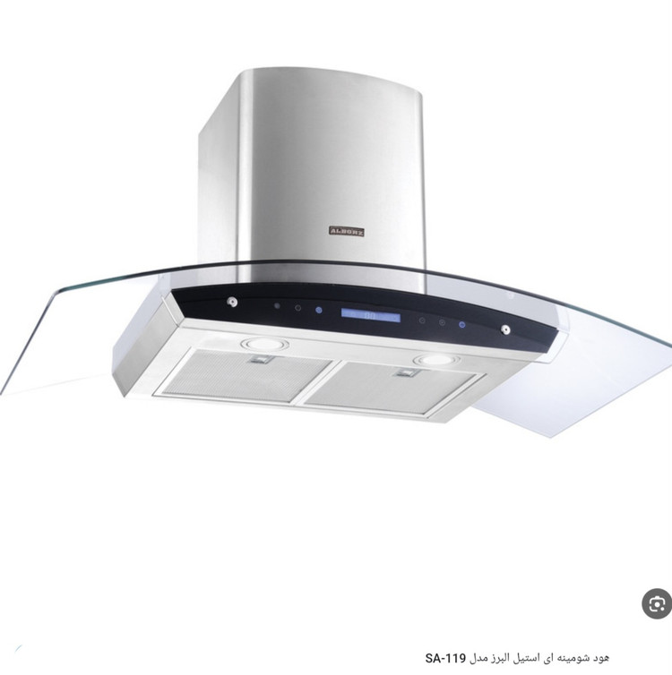 هود استیل البرز کد SA119 شومینه ای پروانه و محفظه موتور فلزی